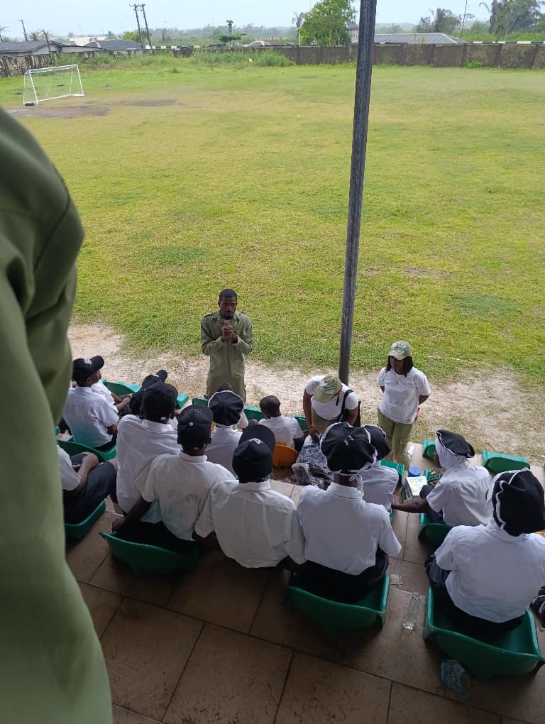 Upon arrival, we met the school’s administration and moved to organize the students. They were assembled at a large pavilion, this time, we used a strategic layout: the students were carefully arranged by class level (SS1, SS2, and SS3) into different seating areas. This wasn’t for ease of crowd control, but for precision impact, allowing our three speakers, George, Rebecca, and Gabriel, to tailor their message specifically to the academic and personal levels of each group.